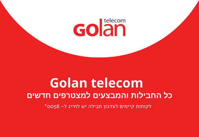 במילוי פרטיך הנך מאשר/ת בזאת שקראת והבנת את מדיניות הפרטיות שבאתר גולן טלקום, והנך מסכים/ה לאיסוף ושימוש במידע האישי שלך בהתאם למדיניות זו, לרבות יצירת קשר על ידי נציג מטעם גולן טלקום באמצעות הטלפון/הודעות WhatsApp/SMS להשלמת התהליך.